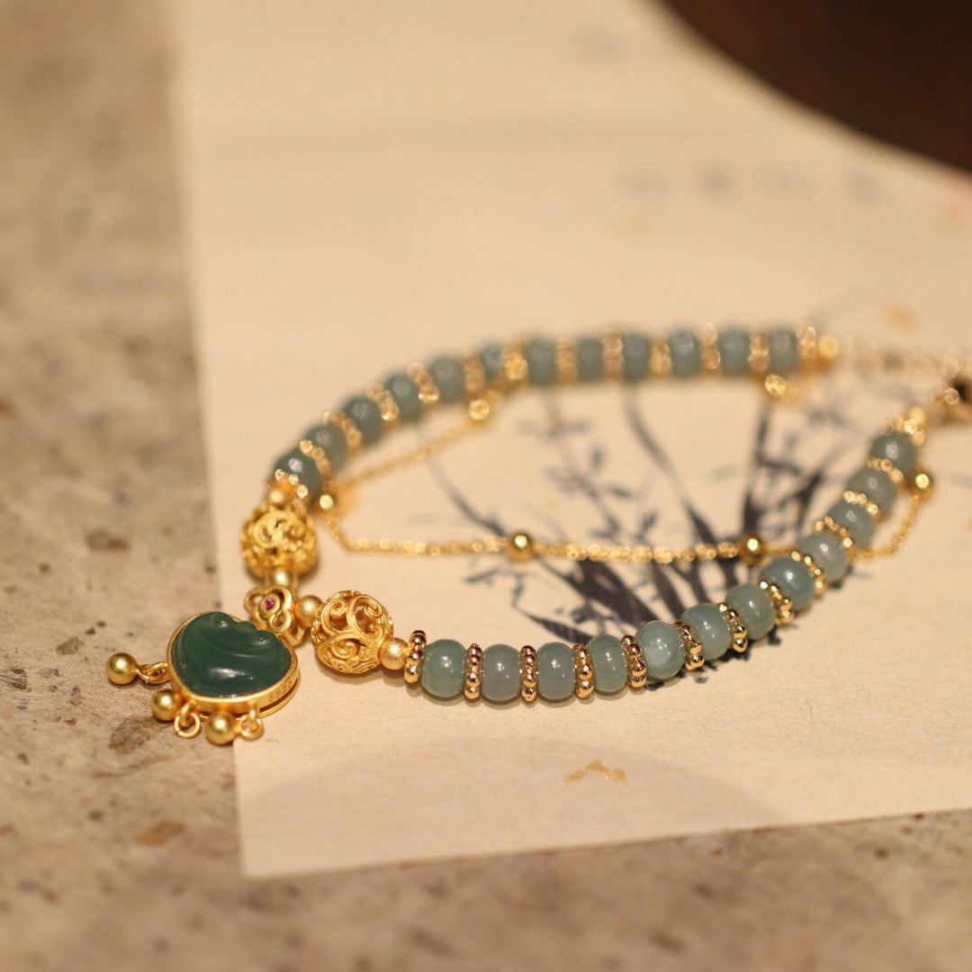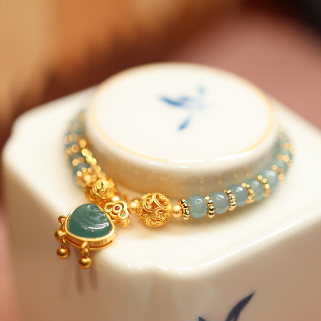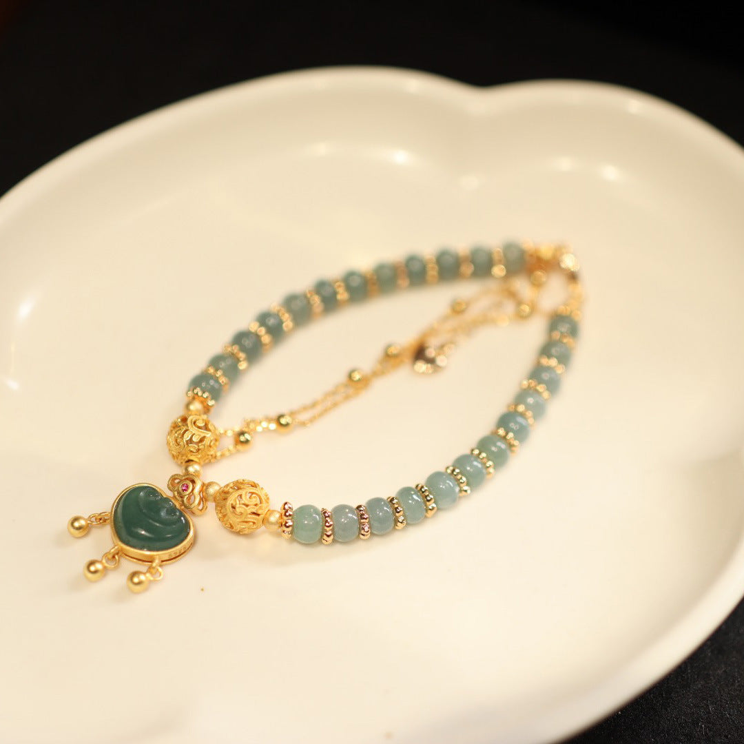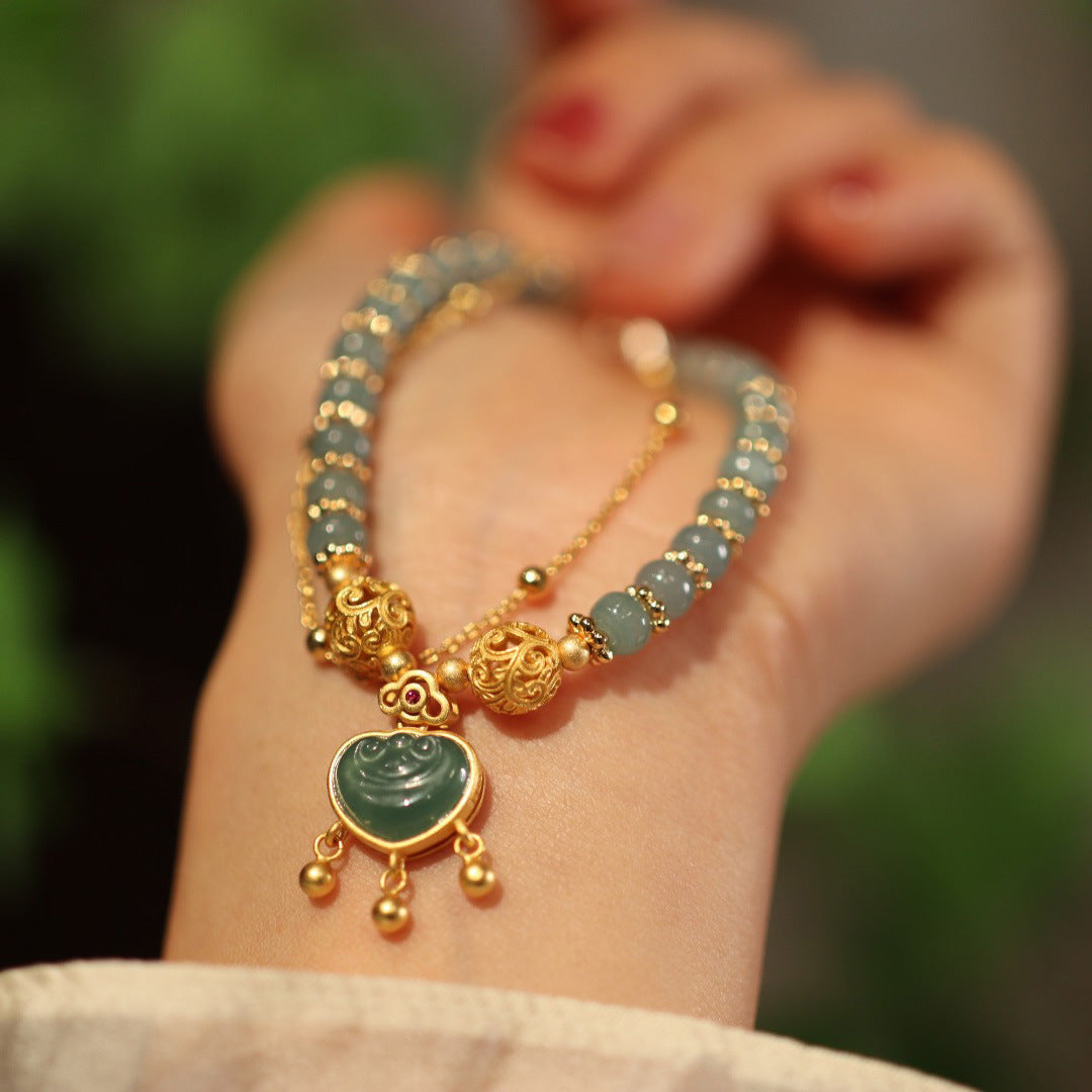 天然翡翠手链女福锁绣球双链叠戴古风精致平安福锁手链