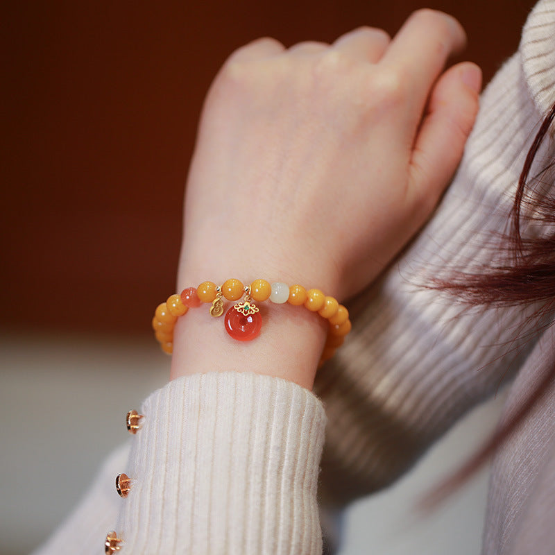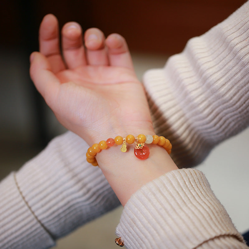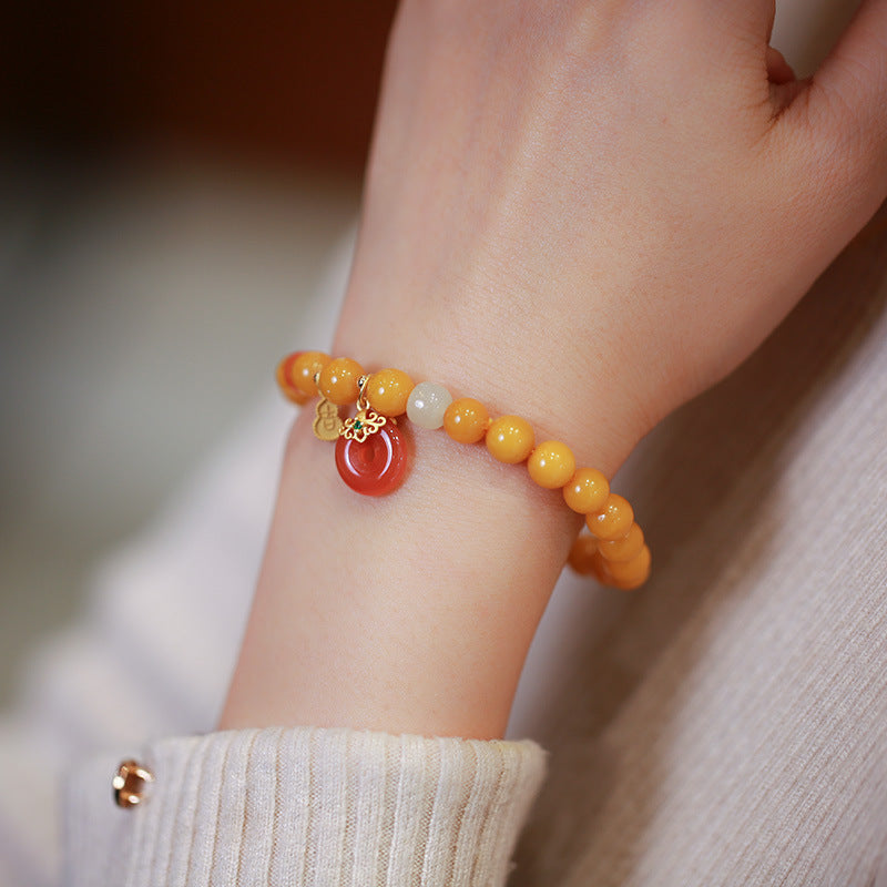 天然蜜蜡手链串珠女盐源玛瑙平安扣轻奢高级感手串手饰