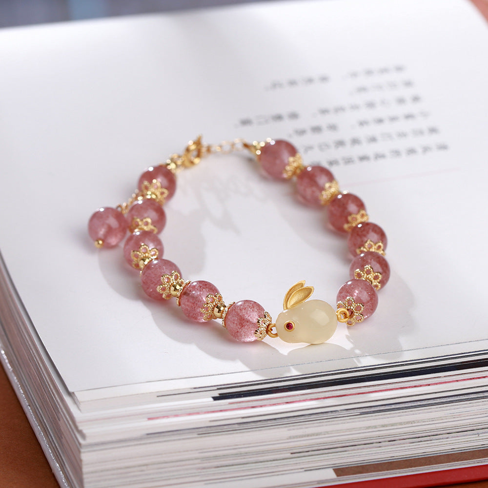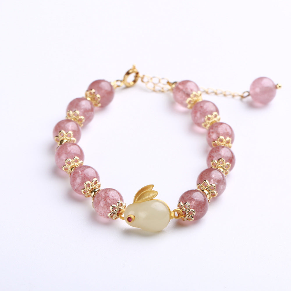|名称|草莓晶纯银手链 招桃桃月兔手链