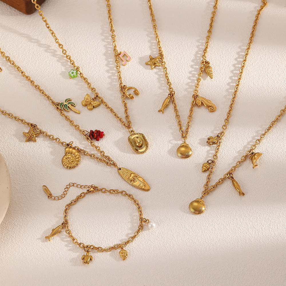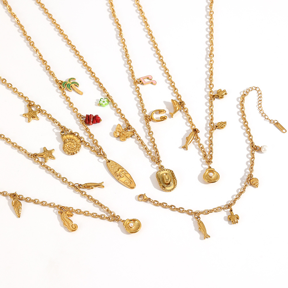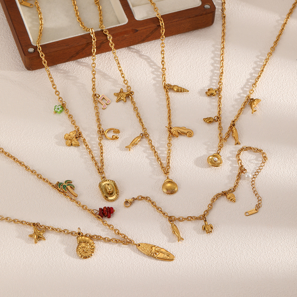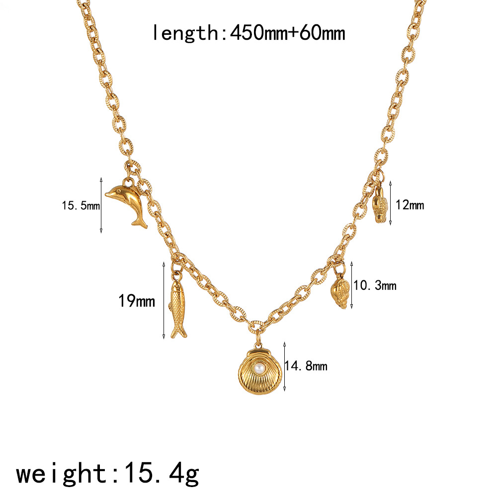 Cross-border European and American ocean starfish pendant, conch necklace, women's versatile light luxury stainless steel plated 18K gold-plated collarbone chain