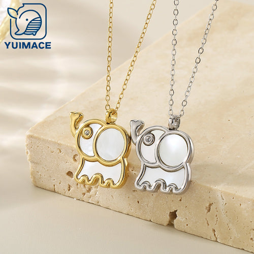 Creative Simple Sweet Fashion Versatile Shell Diamond Elephant Pendant Premium Necklace Women's Accessories
