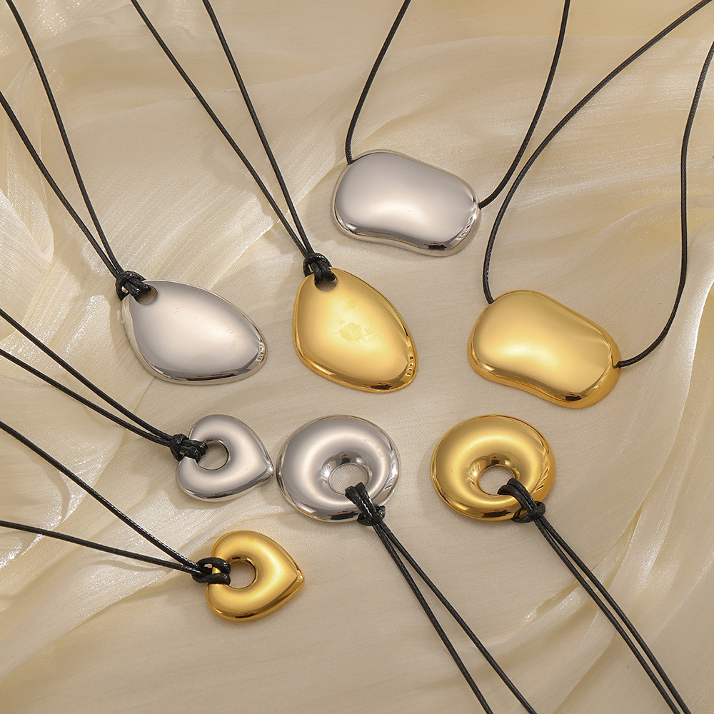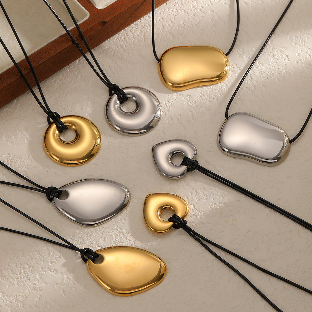Cross-border European and American wax rope stainless steel necklace long adjustable irregular pendant minimalist collar necklace high sense
