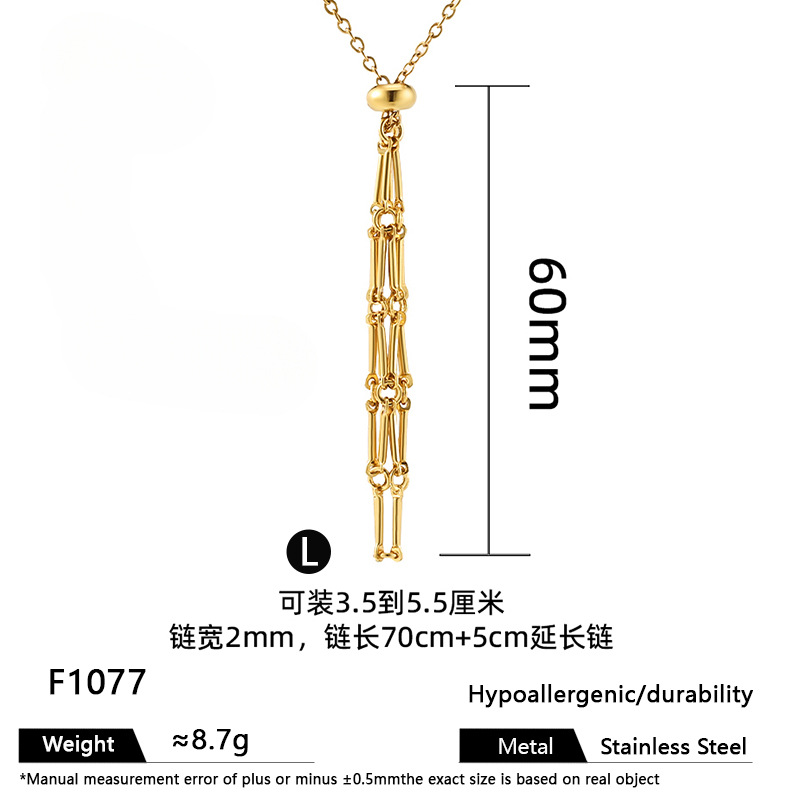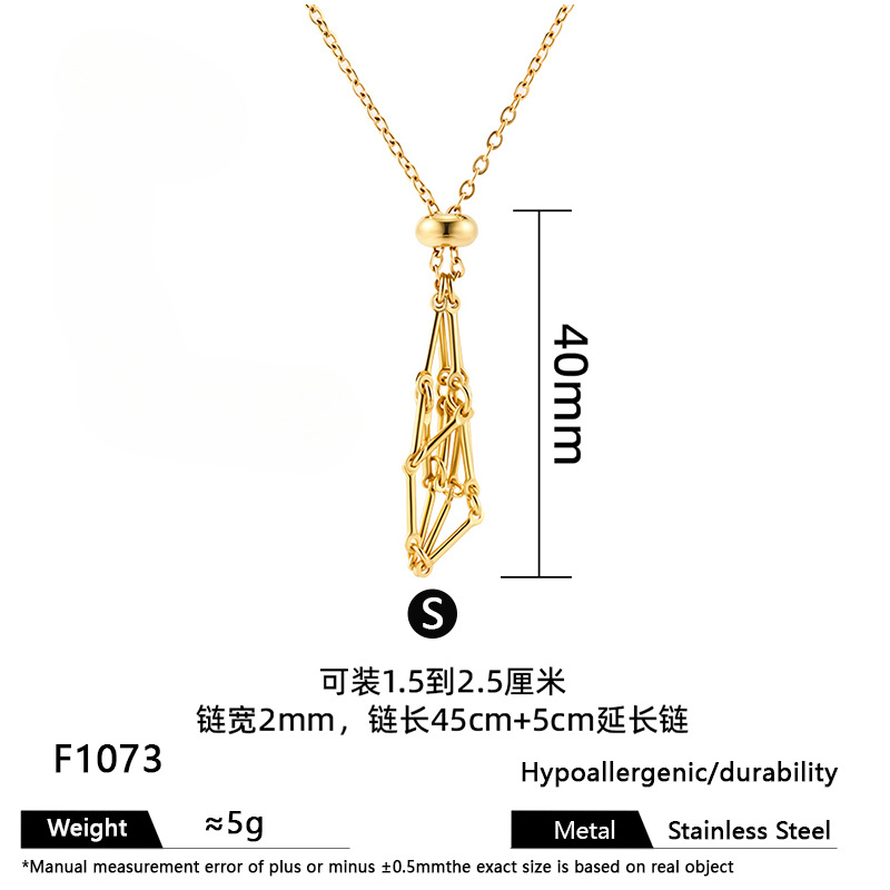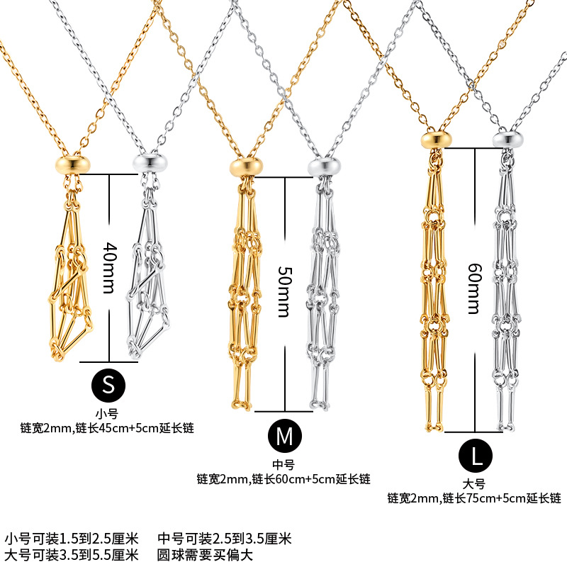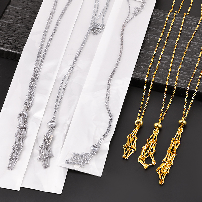 European and American cross-border stainless steel high-end bamboo necklace woven mesh pocket adjustment chain pendant mesh pocket halterneck jewelry