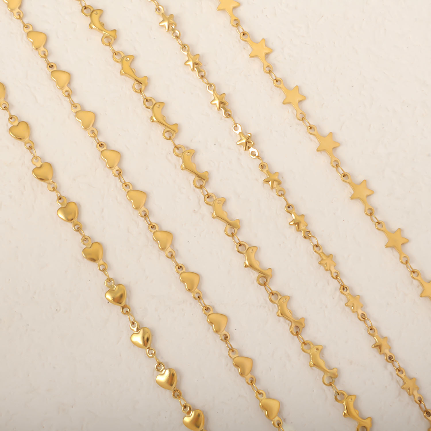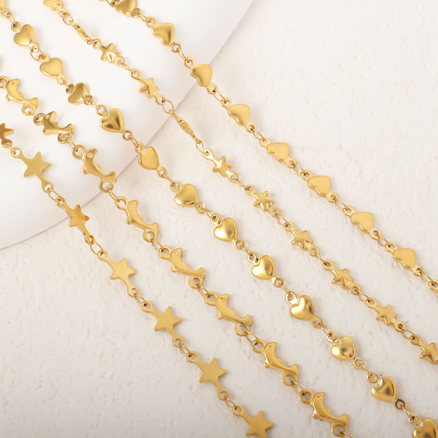 European and American cross-border stainless steel vacuum electroplating gold peach heart dolphin five-pointed star necklace handmade chain jewelry accessories wholesale